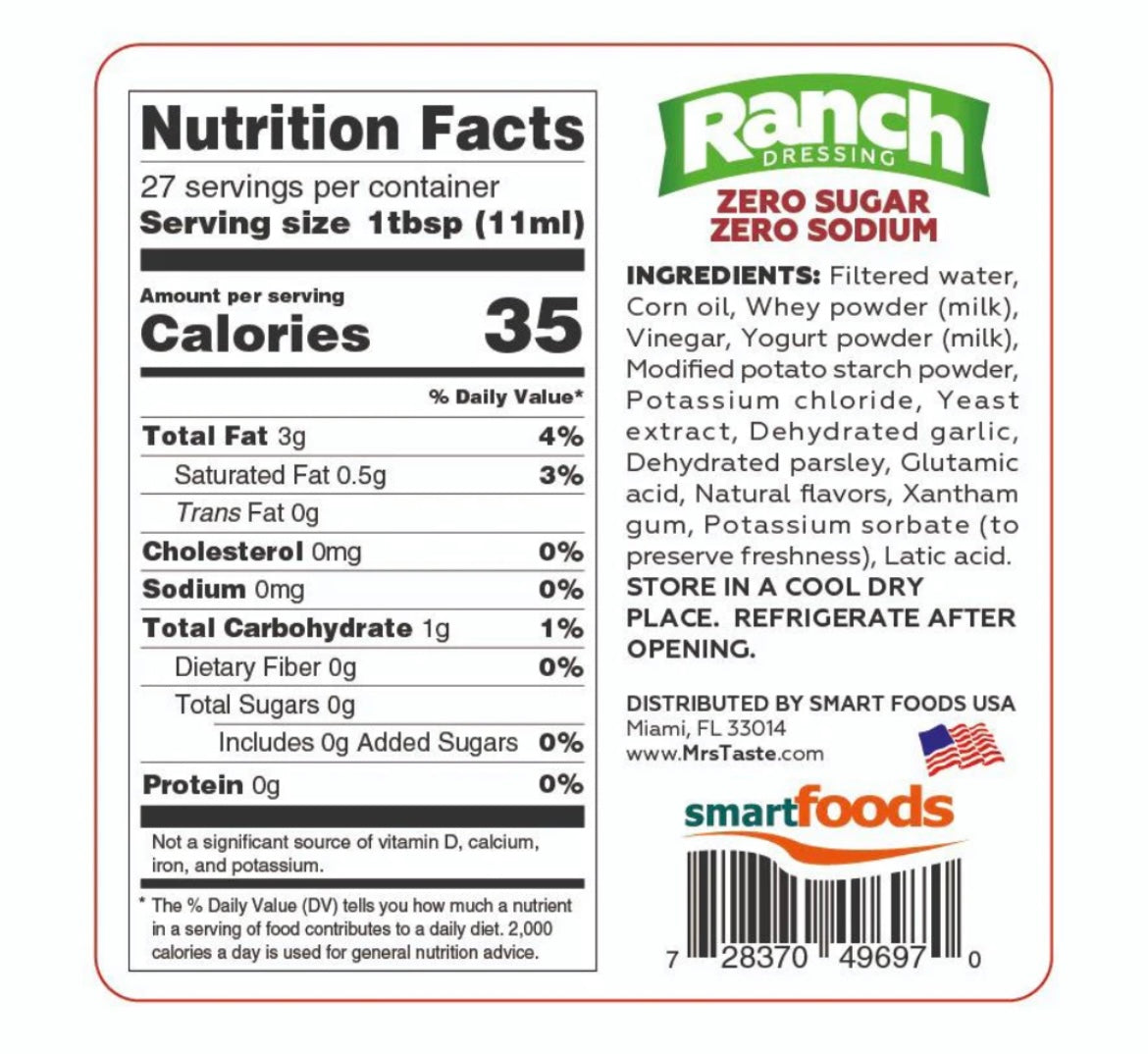 El aderezo Mrs Taste Ranch fue creado para elevar sus papilas gustativas a una experiencia ranchera como ninguna otra, mientras mantiene su dieta en línea. Cada ración de esta salsa contiene